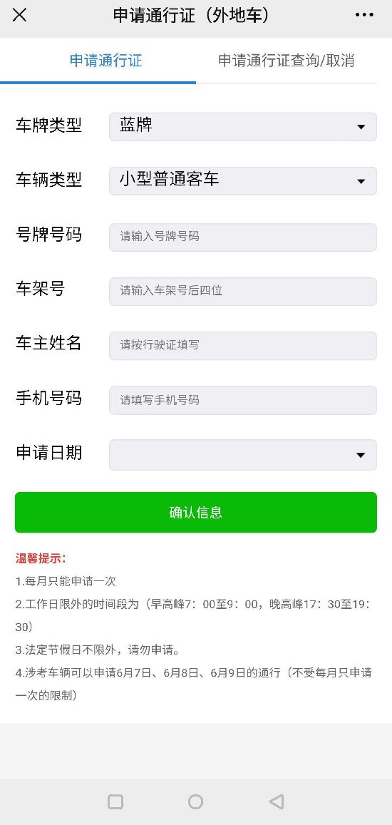 于按提示依次将车主姓名、手机号码以及车牌号码进行填写之处,需特别留意车牌号之核对,一旦输错一位,便得等待至下个月方可重新申请,是跟随链接进入申请页面后的。
