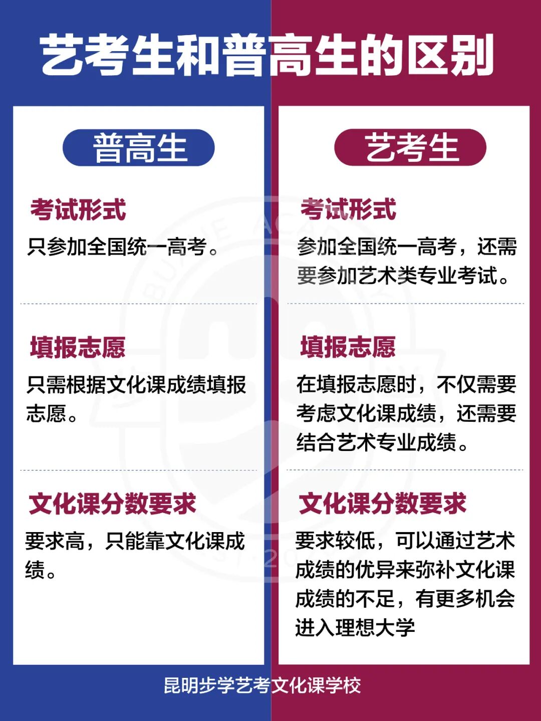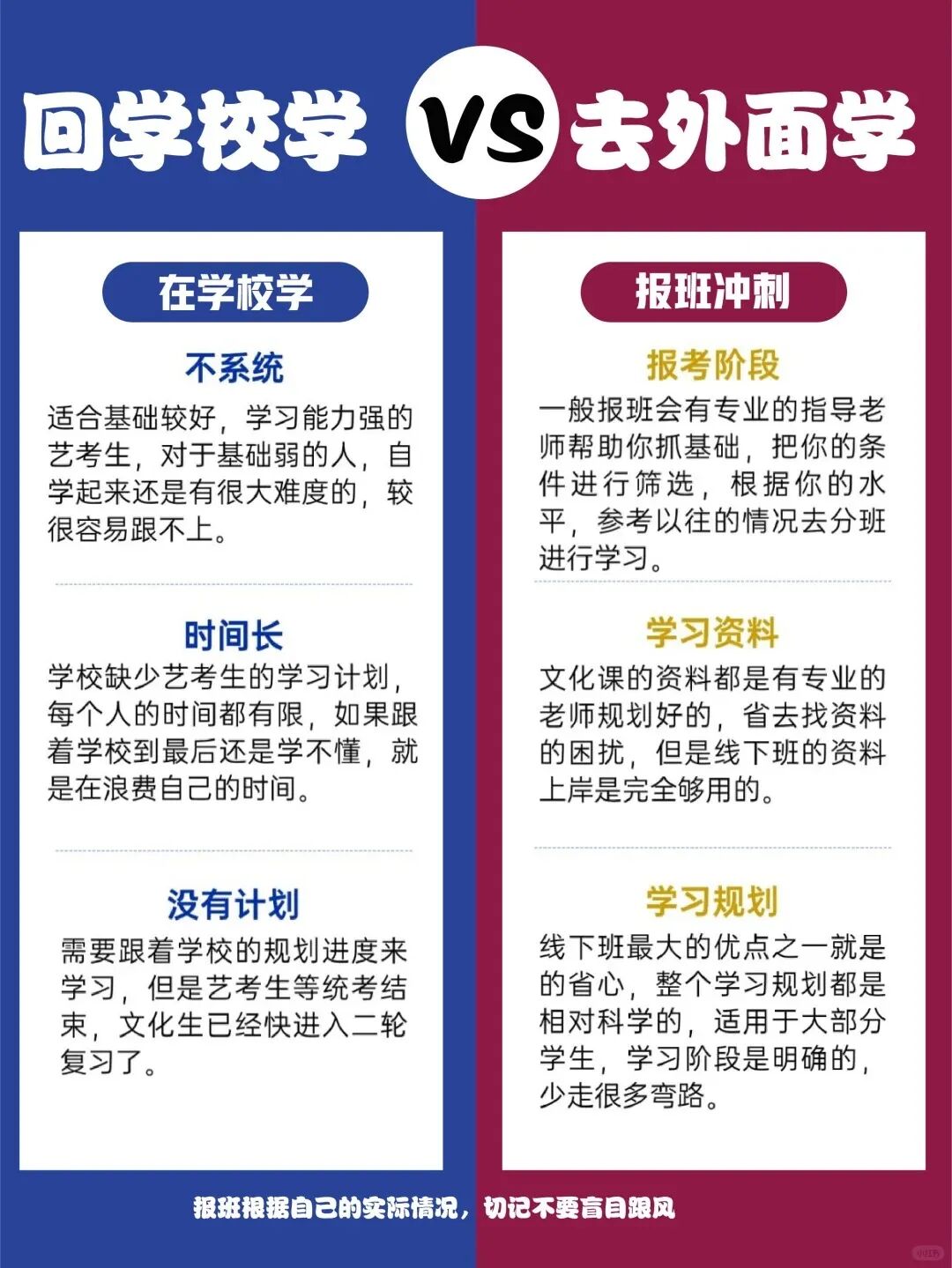 无论选择哪一条道路,都得做好承受吃苦的准备。艺考生在寒冷的冬天画画,以至于手生了冻疮,普高生刷题刷到凌晨两点,大家所付出的努力实际上相差无几,不同之处仅仅在于把精力放置在哪个方向上面。