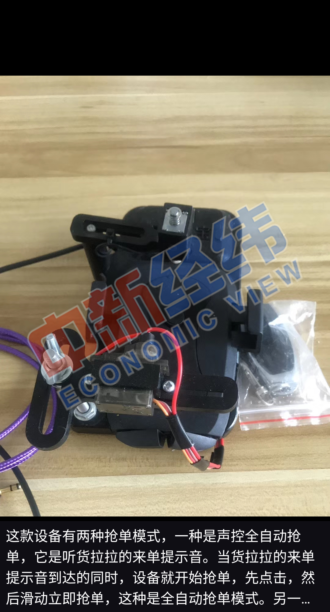 相比刷分而言,抢单外挂更为简单粗暴,草木青售卖的物理外挂存有两种模式,分别是声控全自动模式以及手动遥控模式,其反应速度相较于人手要快出许多,软件外挂每月收费300元,能够设置距离、价格条件,甄超还在售卖定制手机一体机,宣称是软硬件相结合的,不容易被封禁,然而这些设备价格高昂,且每月还需要续费激活码。