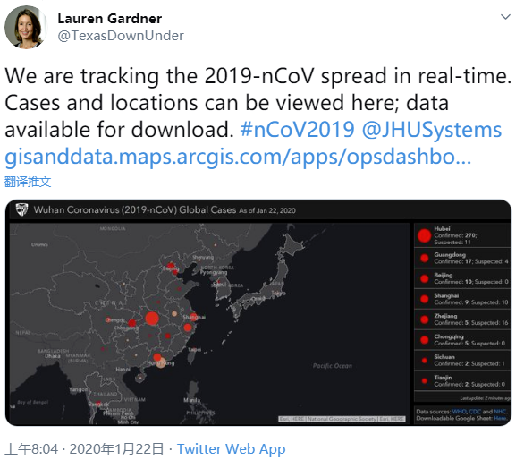 1月22日起至31日,整个项目里的全部数据,皆是董恩盛手动逐个收集的,他每日早晚分别更新一回,对着电脑将各地报告的病例数字敲入进去,那段时期美国尚未大规模暴发,数据量尚可应付,然而他已然感觉到这工作并不轻松。