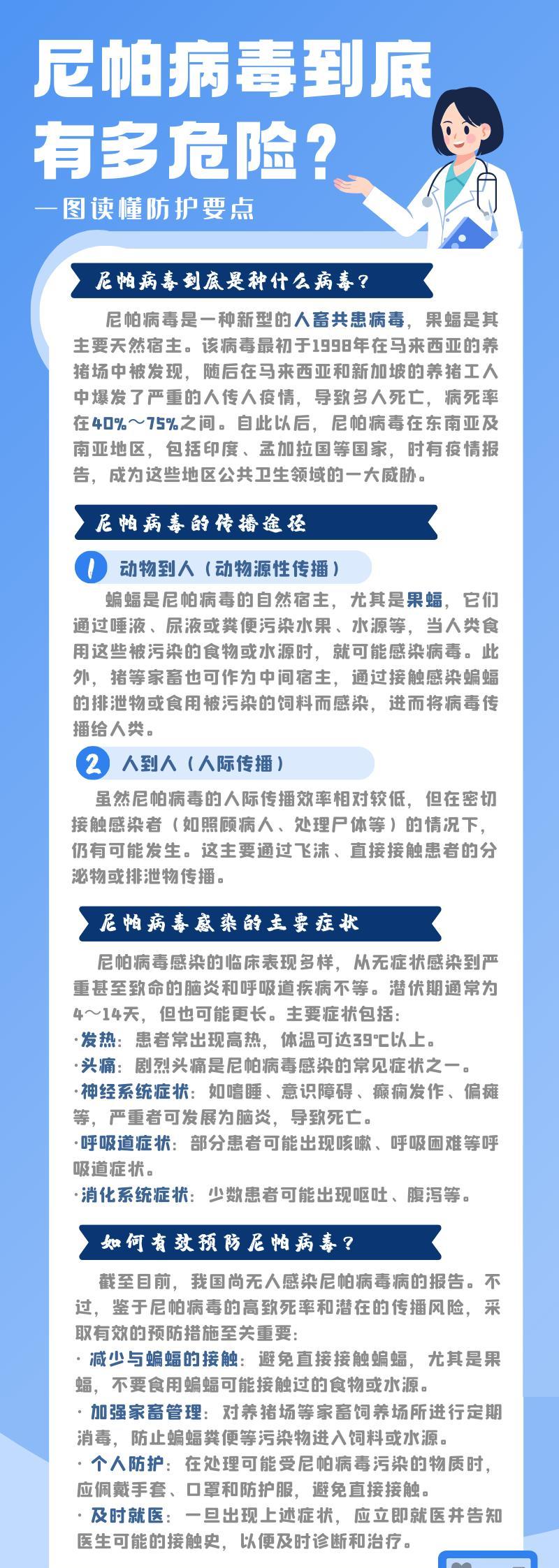 于国内,临床医生也正提高着警惕,复旦大学附属华山医院感染科主任张文宏,在2026年1月的公开讲座里提到,中国具备尼帕病毒的二代测序检测的能力,在4小时内就能够出结果,他特地提醒神经内科以及呼吸科医生,要是遇到近期有南亚旅行史、并且是原因不明的脑炎或者肺炎患者,务必要问清楚是否接触过蝙蝠又或者饮用过生椰枣汁。