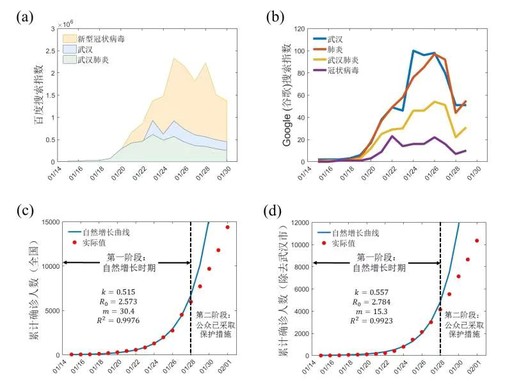 把百度、Google的搜索趋势当作重要参数的是研究团队,数据表明在1月22日左右人们开启大规模对疫情关键词的搜索,而此日恰为武汉封城的前一天,团队把这一时间点往后推一个潜伏期,进而得出在2月1日前后出现拐点的结论,这个推理链条明晰,并非凭空臆测。
