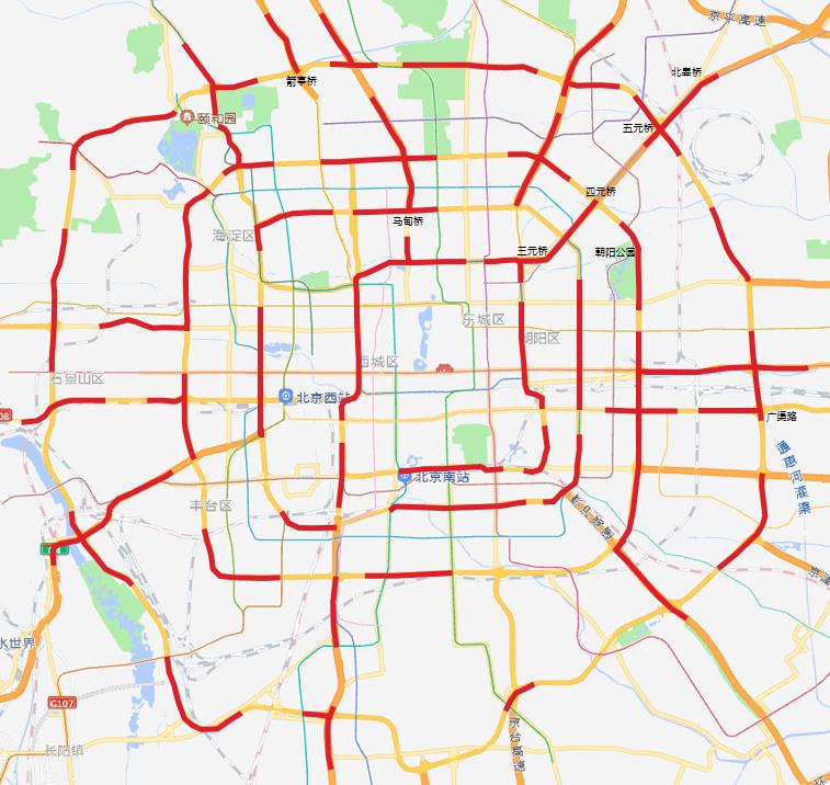 下午到晚间,北京南站、北京西站、北京站、北京朝阳站人流量高,坐火车人数量多,送站接站车辆数目大,周边道路极易出现拥堵排队状况。