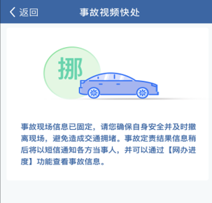 要是存在人员伤亡,或是不符合视频快处条件的事故,接警人员会直接通知辖区民警前往现场处理,接警人员完成证据采集后,APP会推送撤离提示,这时当事人便可放心撤离现场,防止造成交通拥堵。